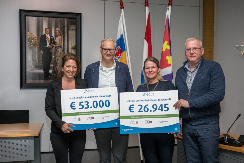 Afgelopen woensdag, 8 april was de uitreiking van de symbolische cheques vanuit het leefbaarheidsfonds. Hub Meuwissen (de Wethouder namens de Gemeente) en Tys van Elk (directeur VDL Nedcar) verzorgden de uitreiking van de cheques.